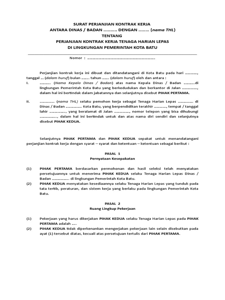 Perjanjian kerja pekerja harian lepas nomor: Perusahaan biasanya akan memberikan surat kontrak kerja dihari pertama bagi pegawai barunya. Contoh surat perjanjian kerja harian lepas. Fredy bagus kusumaning yandi, s.h, m.kn jabatan : View contoh kontrak karyawan (probation).docx from law 10000 at islamic university of bandung.